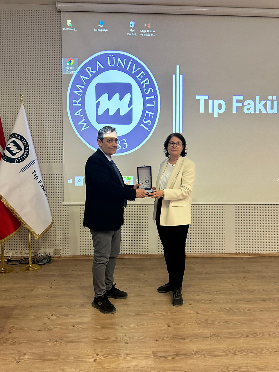 Marmara University School of Medicine vice dean Prof. Hasan Raci YANANLI, presented thank-you plaques to head of TÜYZE Prof. Songül VARLI and TÜYZE researchers, Asst. Prof. Habib ÖZDEMİR, Asst. Prof. Nurullah ÇALIK, Dr. Mecit YÜZKAT, and Lect.Yasemin TOPUZ, who spoke during the seminar series.