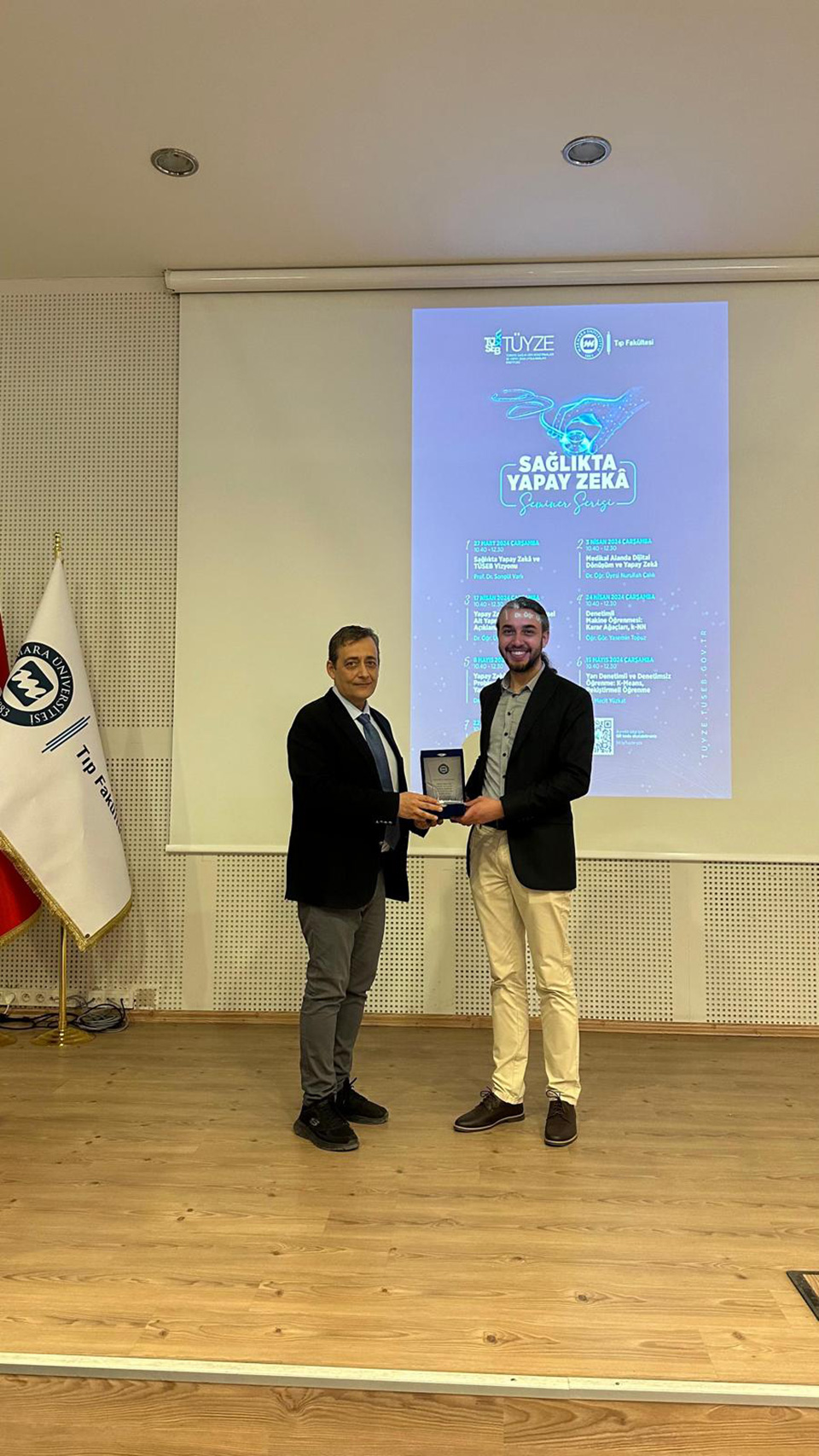 The seven-week talk “AI in Healthcare Seminar Series” organized by the TÜSEB-Türkiye Health Data Research and Artificial Intelligence Applications Institute (TÜYZE), between April 23, 2024, and May 22, 2024, at Marmara University School of Medicine, has been completed.