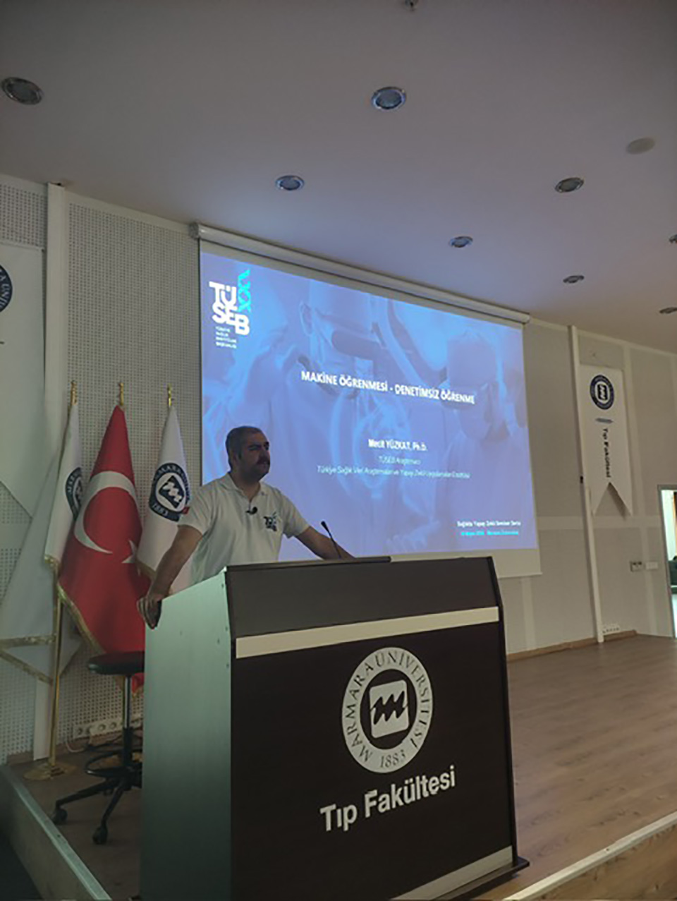 As a researcher at the Türkiye Health Data Research and Artificial Intelligence Applications Institute (TÜYZE), Dr. Mecit YÜZKAT delivered a presentation titled “Semi-Supervised and Unsupervised Learning: K-Means, Reinforcement Learning” as part of the AI in Healthcare Seminar Series, on May 15, 2024, at Marmara University School of Medicine.
